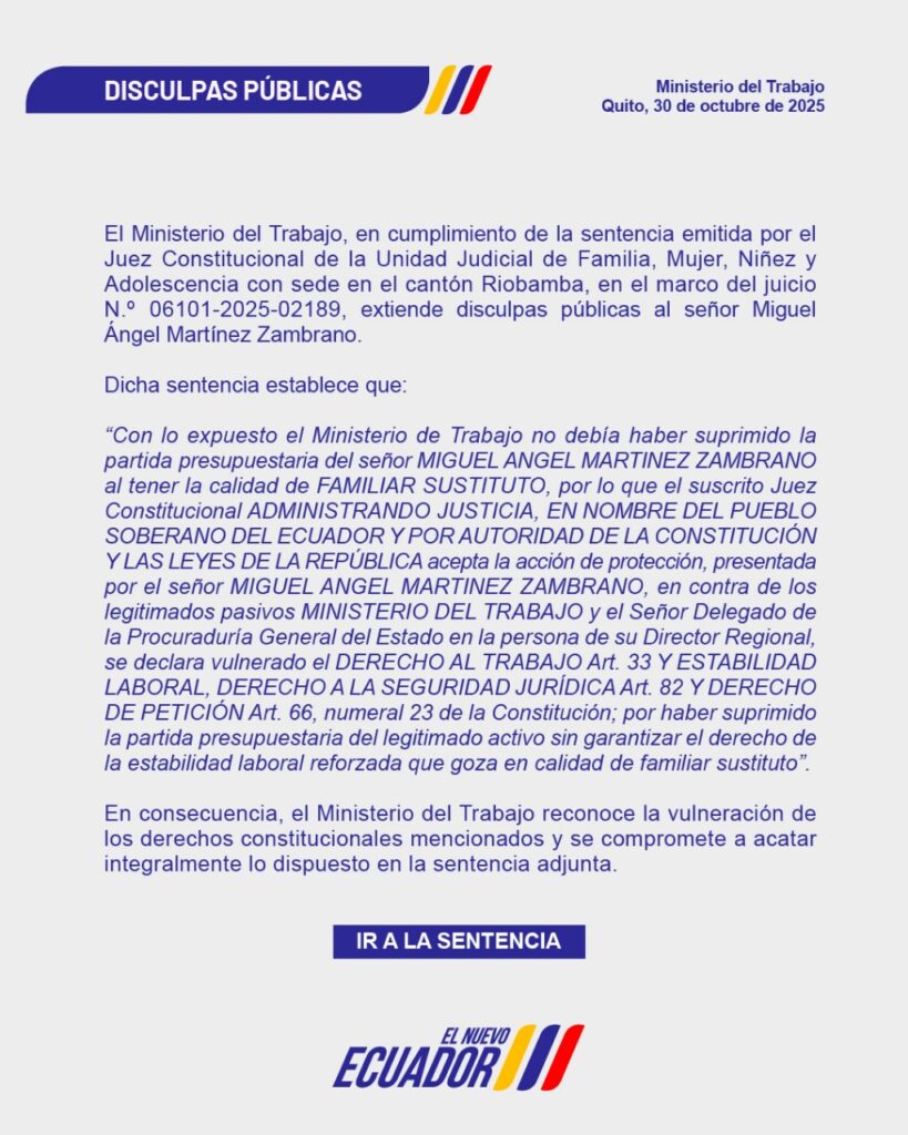 Disculpas públicas. SENTENCIA No. 06101-2025-02189 MIGUEL ANGEL MARTINEZ ZAMBRANO